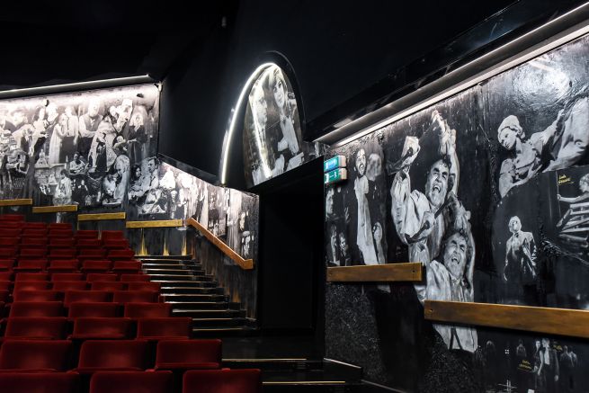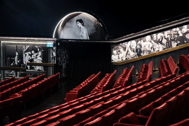 L’idea di un ambiente abitato da figure e apparizioni nasce da una suggestione del direttore Davide Livermore nel solco del recupero e approfondimento della storia del teatro, tracciato già da qualche anno con il lavoro realizzato (sempre dalla Cavalli) negli ambienti della Sala Mercato a Sampierdarena.Le pareti del foyer e della platea sono “abitate” da fotografie dell’archivio storico: immagini della memoria del Teatro di Genova, apparizioni e figure che hanno fatto la storia, ben oltre i confini della città. La tecnica con cui le fotografie ricreano l’allestimento dei nuovi ambienti, tra il Foyer e la Platea, è quella del collage, la stessa adoperata per i manifesti e locandine e foto a colori che ritroviamo sulle pareti della Sala Mercato.«Abbiamo lavorato per “analogie e giochi emotivi”, seguendo una ricerca non cronologica all’interno dell’archivio storico del teatro – racconta Alessandra Cavalli – Davide Livermore ha deciso di coinvolgermi, sulla scia degli esiti del progetto realizzato in Sala Mercato, nel 2022. Questa volta abbiamo scelto un collage di foto tutte in bianco&nero, che appare a chi guarda come una galleria in cui le immagini possono essere interpretate come quadri o sculture. La scelta del bianco&nero è una cifra intensa e evocativa che evoca quella dei film di Ingmar Bergman.